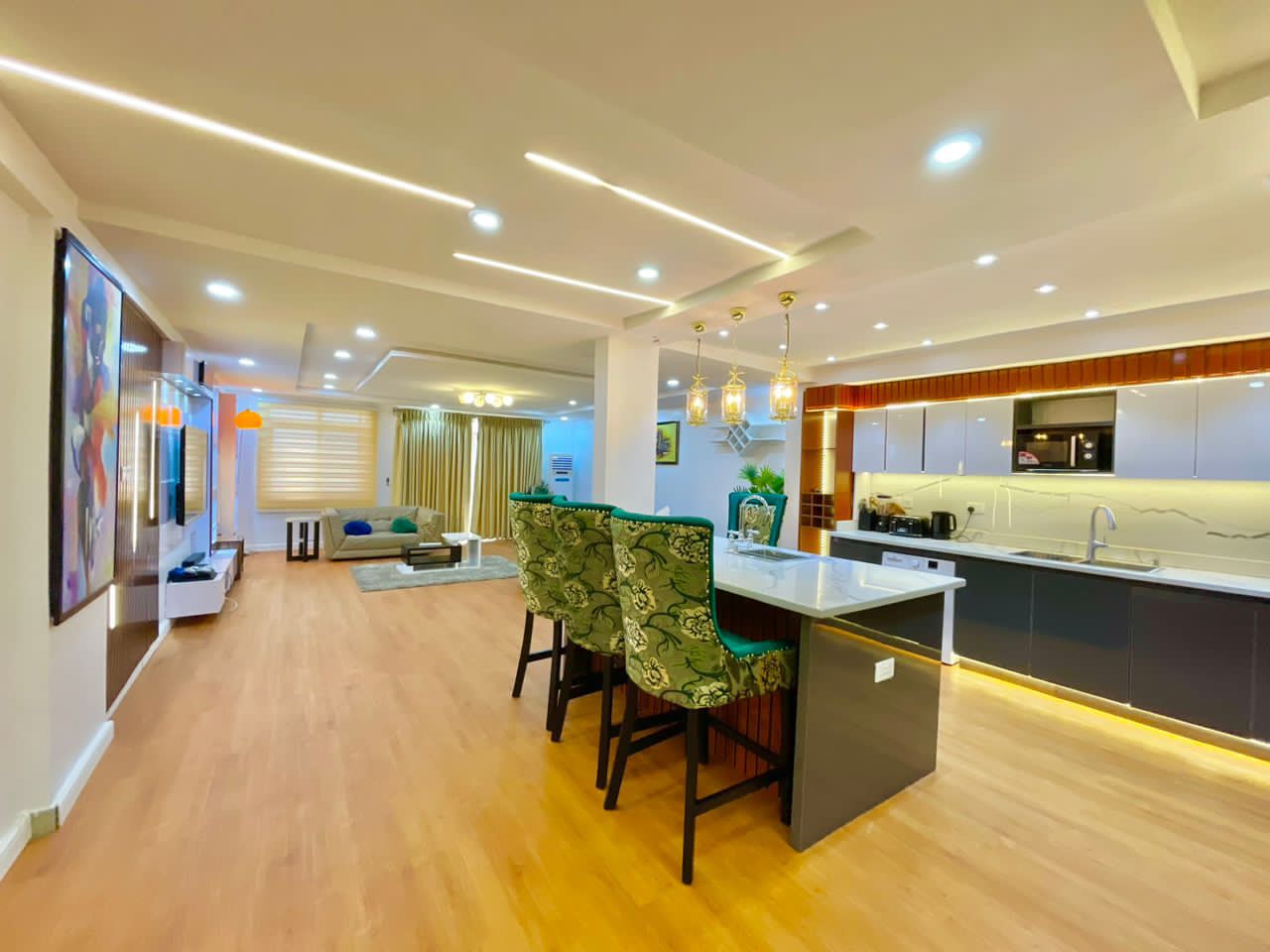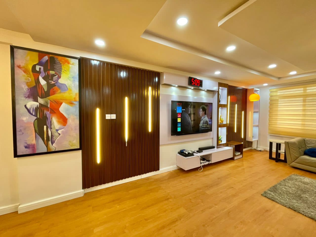 – High-Tech Entertainment: 65″ TV with Wi-Fi, PS4, DStv, and Netflix.